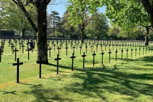 Aménagée en 1920, la nécropole nationale recueille 3643 tombes et 933 corps en ossuaire de soldats français et alliés :...