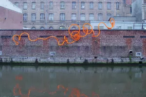 Quelle étrange apparition que ce tuyau orange tourbillonnant au-dessus du cours si paisible de la Scarpe ! Cette œuvre m...