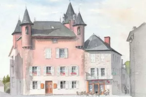 Cette maison rose aux tourelles à proximité de l'église de Meymac est le Château des Moines Larose, ou maison de Jean Ga...
