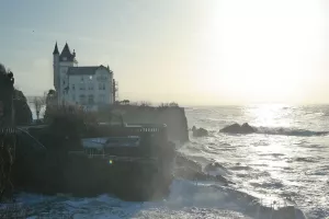 Berceau du Surf, plage et promenade au cadre exceptionnel à Biarritz avec vue sur les Côtes d'Espagne, encadrée par les...